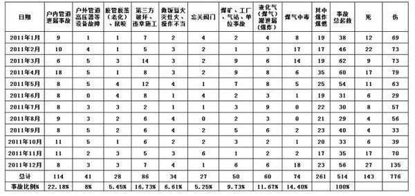 2011年国内燃气事故数据统计